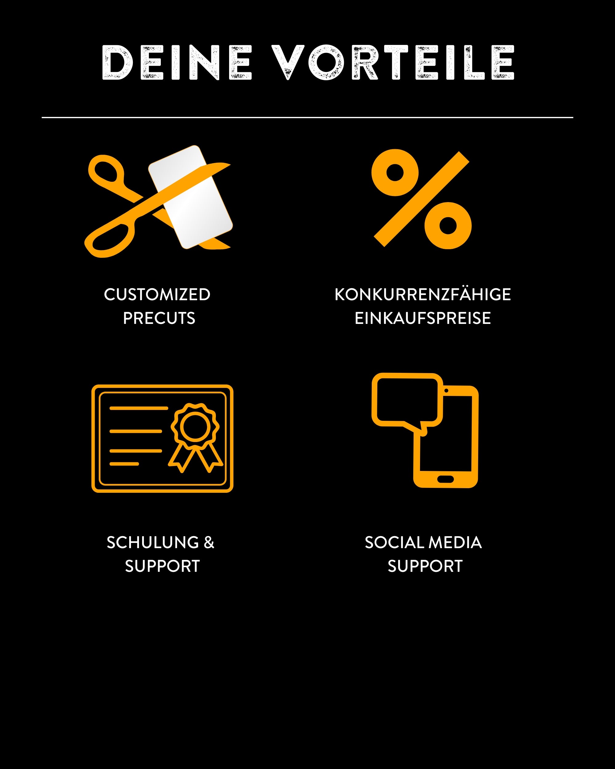 Du bist ein Fachbetrieb für Steinschlagschutzfolie? Du möchtest eine Premium-Folie mit starkem Support? Dann freuen wir uns über deine Nachricht!